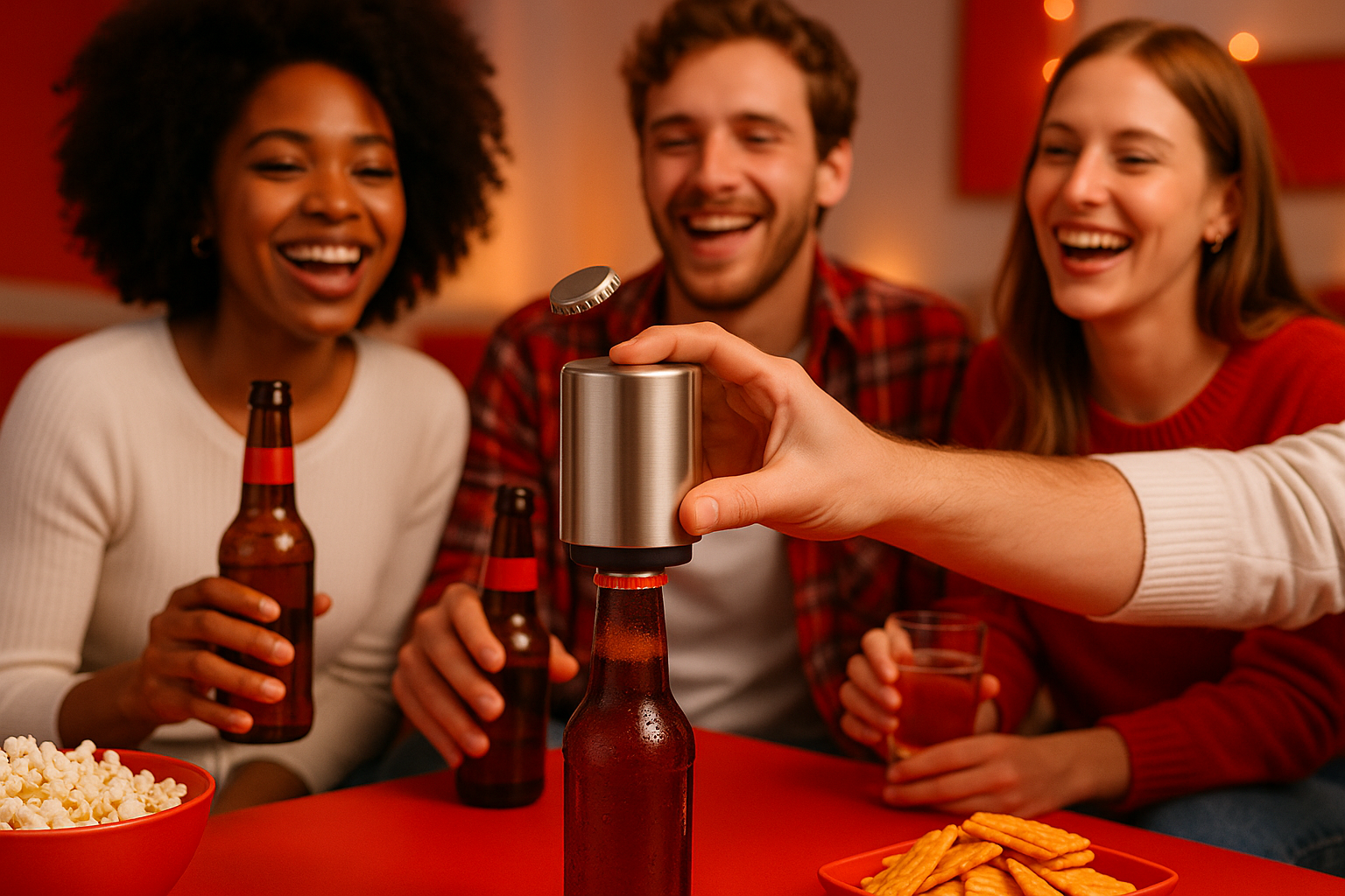 makes popping bottles effortless and satisfying wherever you are – from kitchen counters to campfires and bar counters.